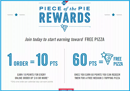 Chương trình cho phép khách hàng đăng ký và tích luỹ điểm thưởng khi sử dụng sản phẩm. Khi tích lũy được 60 điểm, người tham gia sẽ nhận được một bánh pizza miễn phí từ Domino’s.